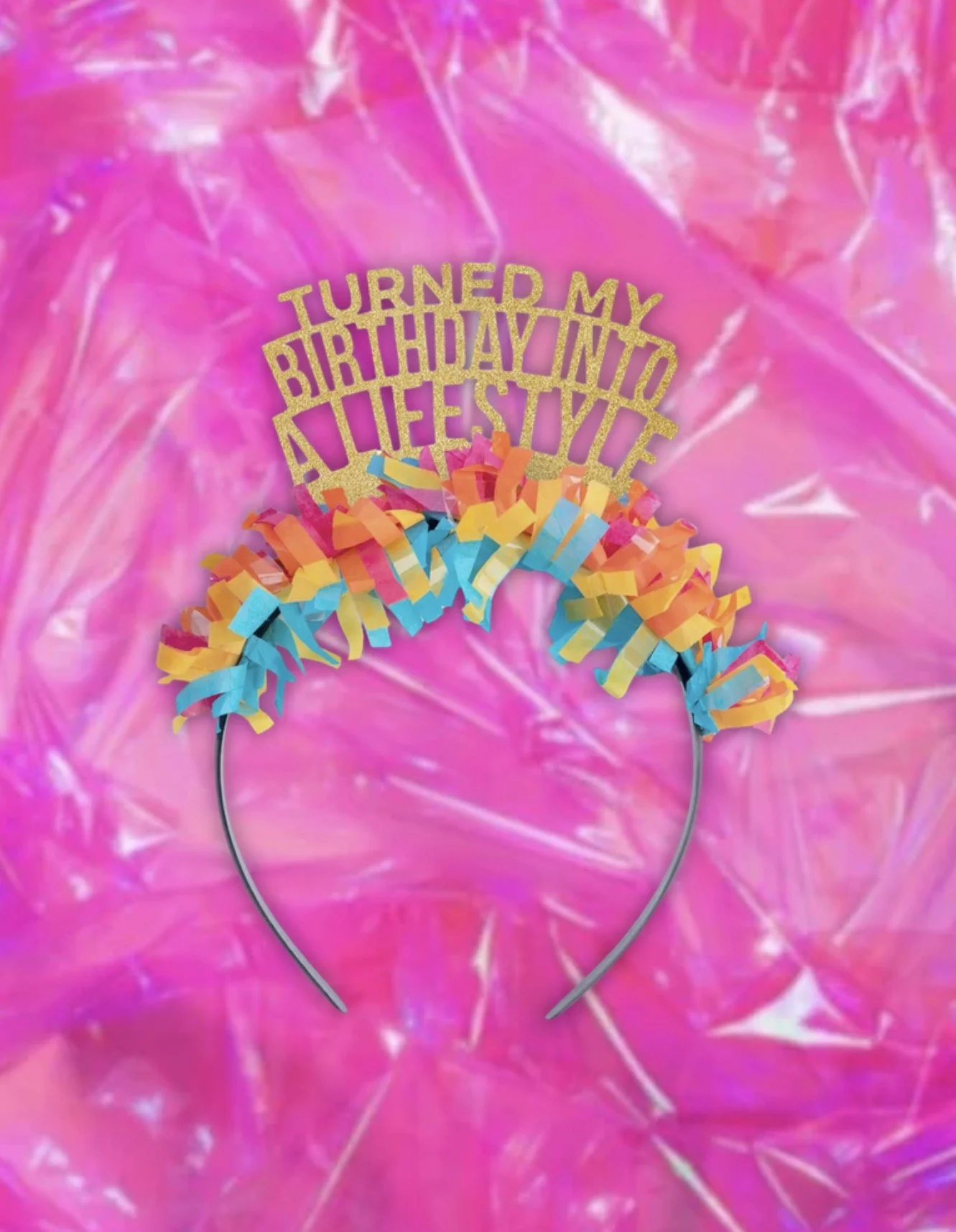 All crown designs vary in height due to the different sayings, but most crowns are 6 inches wide, and anywhere from 2- 4 inches tall. The sayings are cut out of heavyweight premium card stock, and the glitter card stock has minimal to no glitter shedding. The plastic headbands are black and flexible, and fit almost every head whether child or adult. The fringe is made out of colorful fluffy tissue paper.