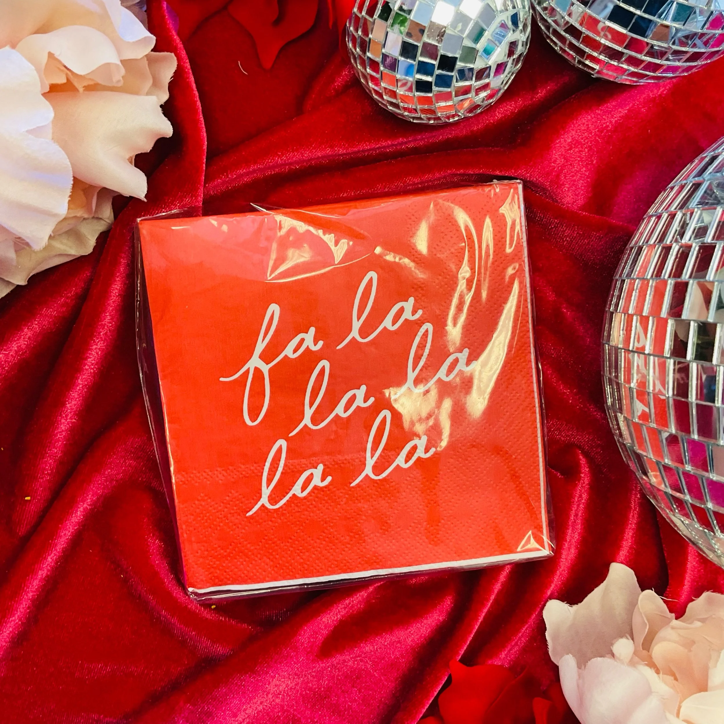 Shop › Fa La La Napkins Image 1 of 1 Fa La La Napkins $7.00 Add these adorable napkins to any table setting or bar cart! Quantity: Add To Cart Added! Add these adorable napkins to any table setting or bar cart!