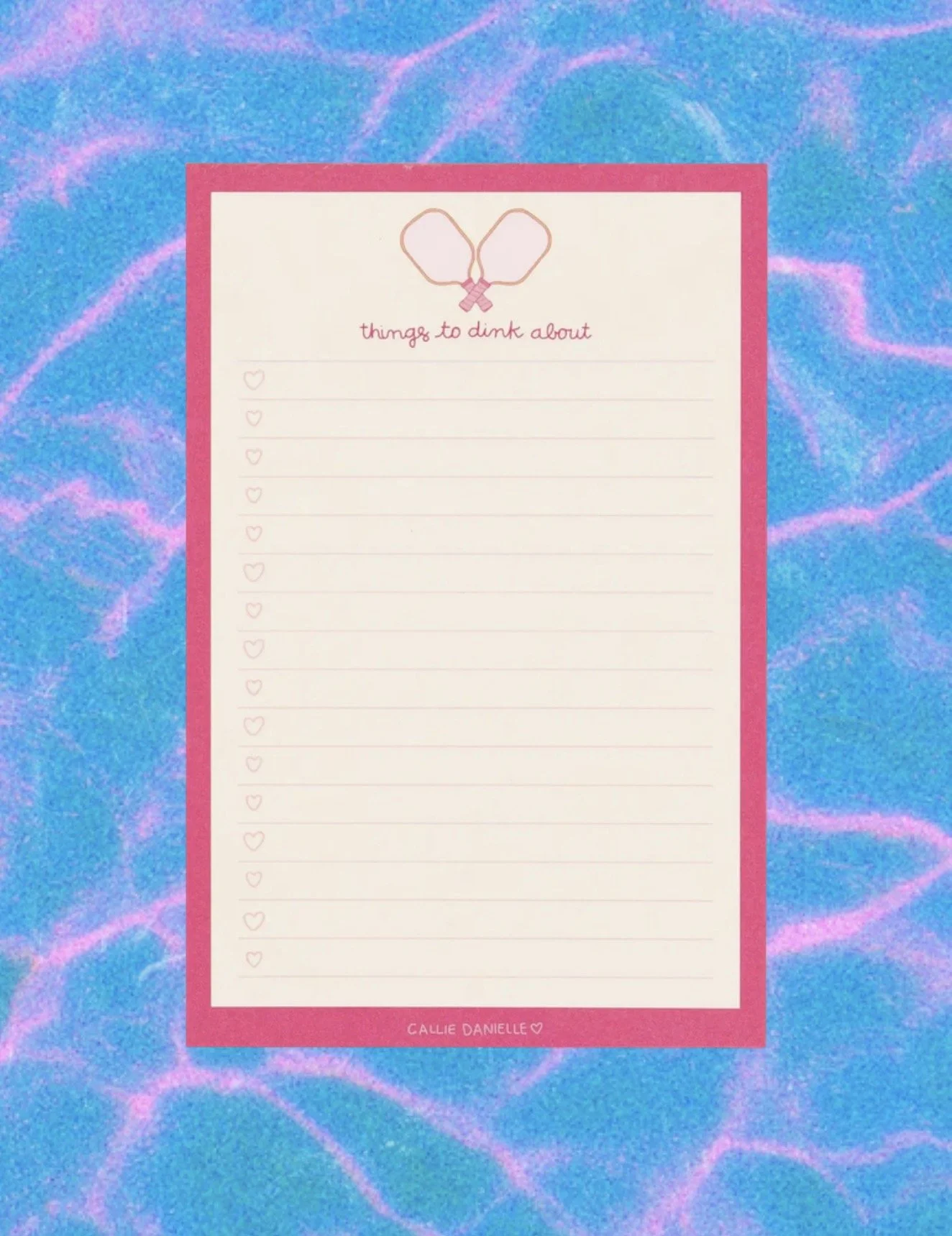 Shop › Things To Dink About Notepad Image 1 of 1 Things To Dink About Notepad $8.00 Get ready to dink and think with the Things to Dink About Pickleball Notepad! Add To Cart Added! Get ready to dink and think with the Things to Dink About Pickleball Notepad!
