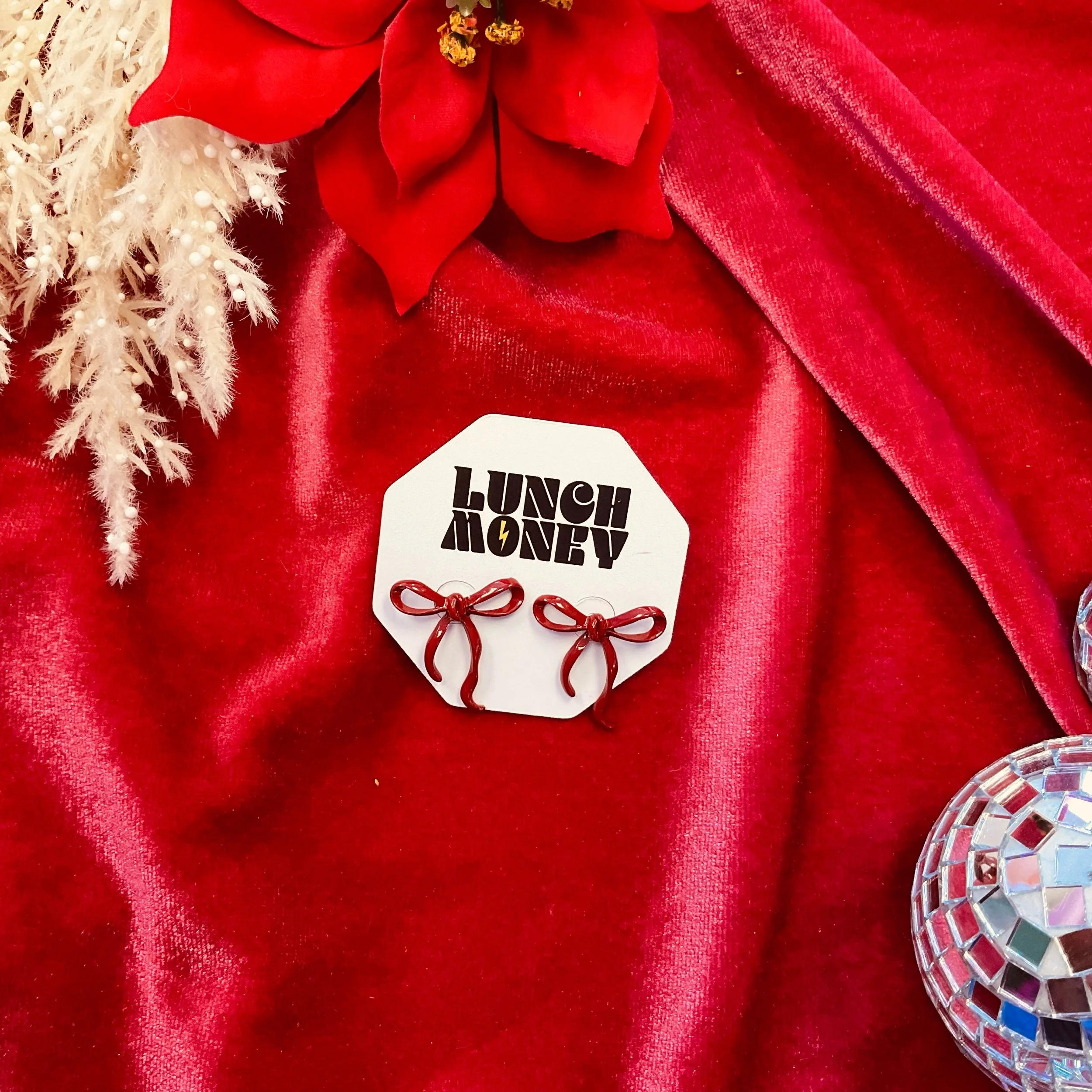 Shop › Red Ribbon Earrings Image 1 of 1 Red Ribbon Earrings $12.00 An adorable accessory for this holiday season! Add To Cart Added! An adorable accessory for this holiday season!